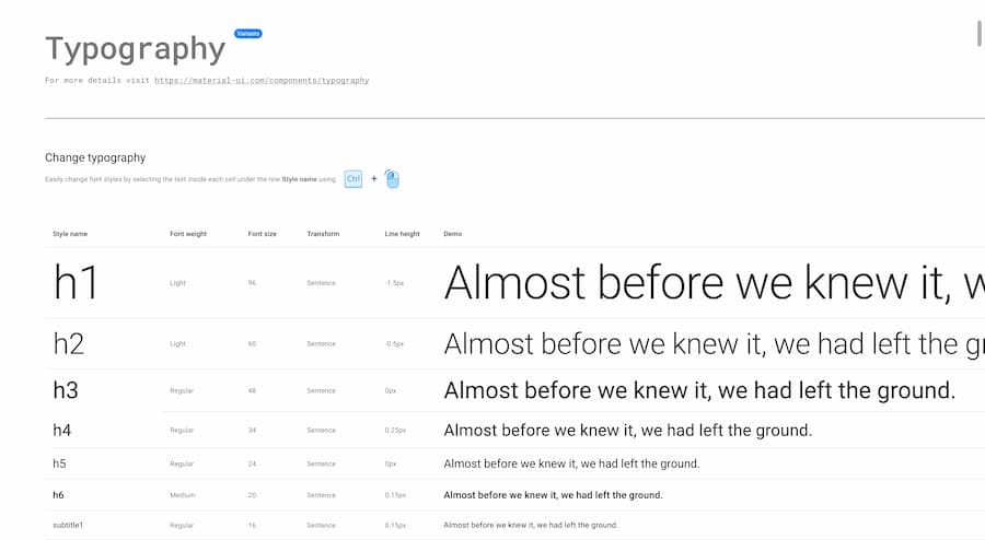 Effortlessly communicate with designers using the same language around the Material UI components props and variants.
